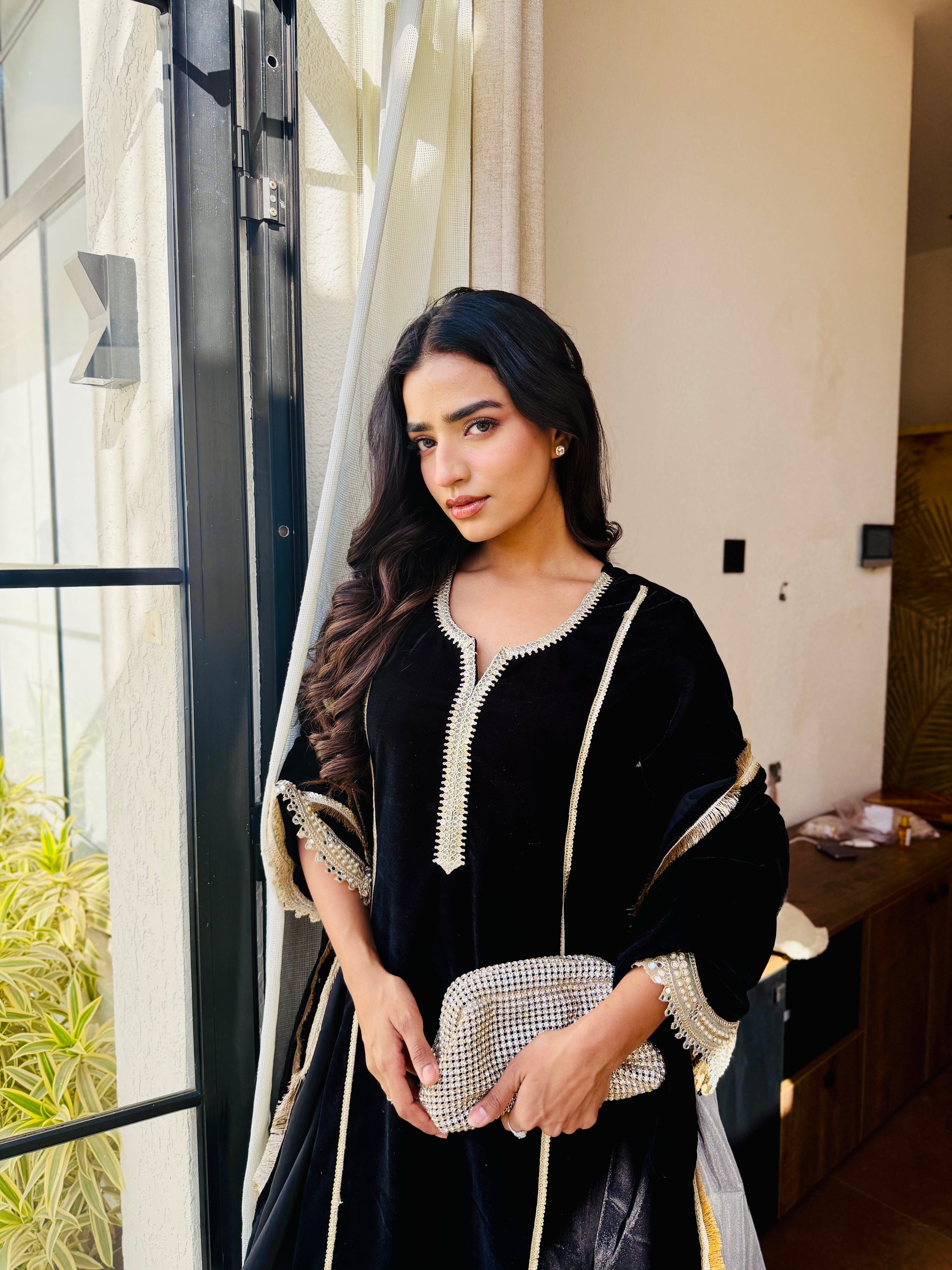 MATERIAL: Premium Velvet (Suit & Bottom), Velvet Dupatta with Gold Border